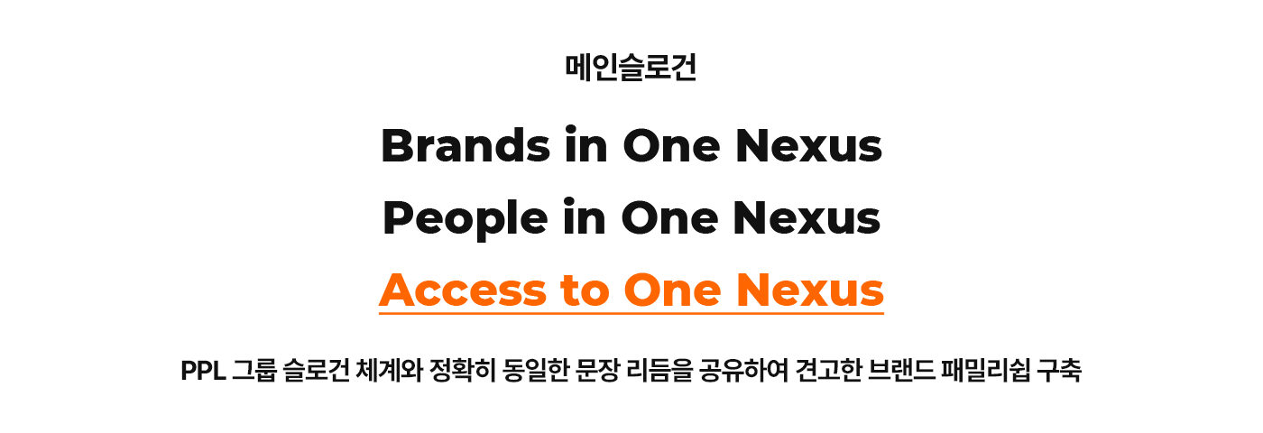 망설임 없이 뻗어나가는 직선 형태는 사용자가 복잡한 과정 없이 PPL Nexus에 ‘즉시 접속'할 수 있음을 시각적으로 대변합니다.